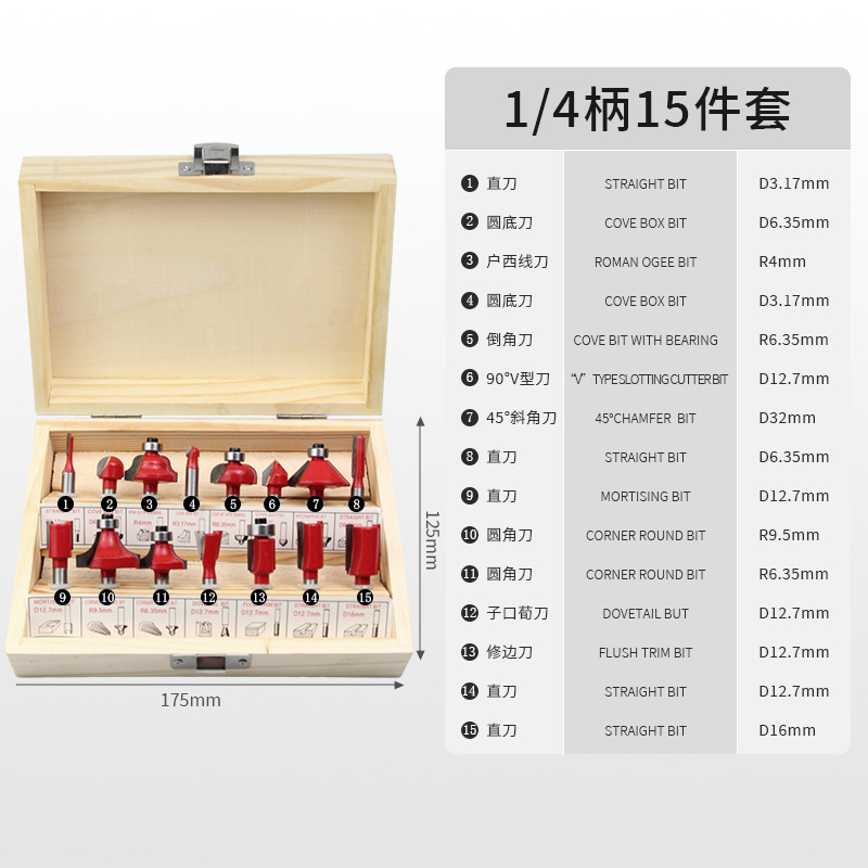 - 型號:【1/4柄部】銑刀15件套
