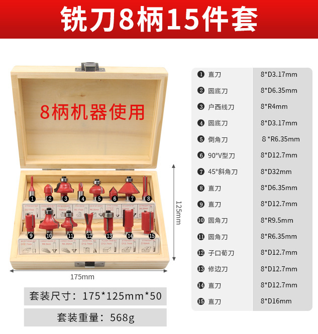 - 型號:【8柄部】銑刀15件套