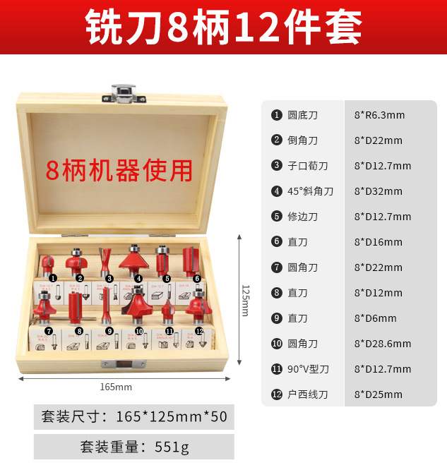 - 型號:【8柄部】銑刀12件套