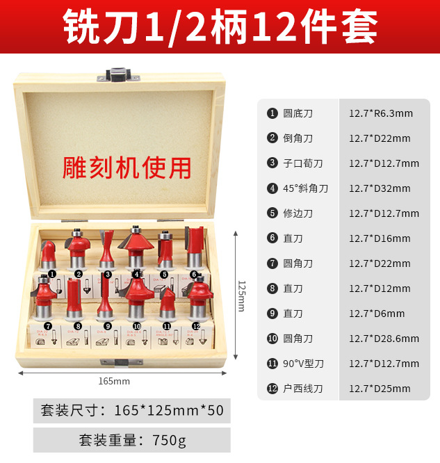 - 型號:【1/2柄部】銑刀12件套