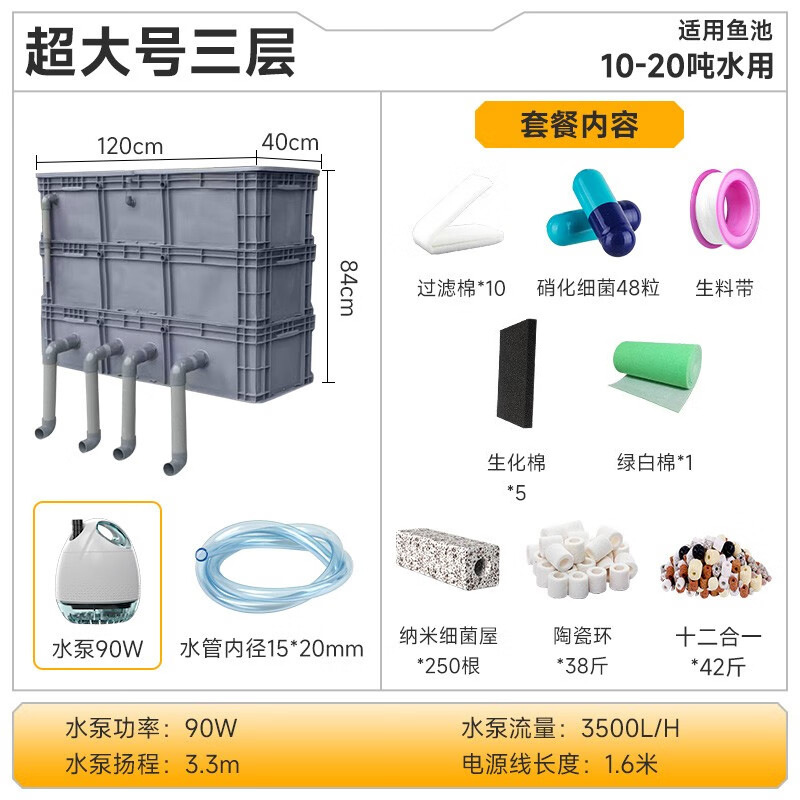 - Specifications: Fish tank turnover box (extra large size 3 layers) - gray + filter cotton + filter material + water pump