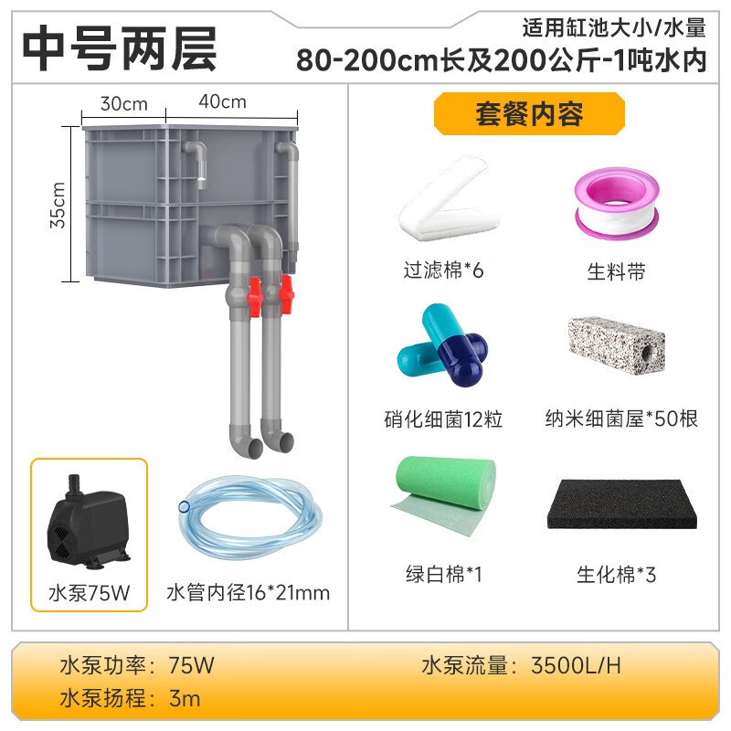 - Specifications: Fish tank turnover box (medium size 2 layers) - gray + filter cotton + filter material + water pump