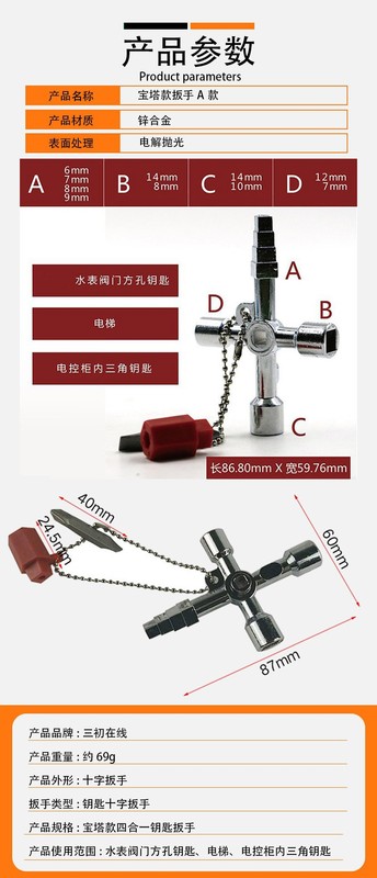 - Specifications and models: Pagoda style wrench 69g