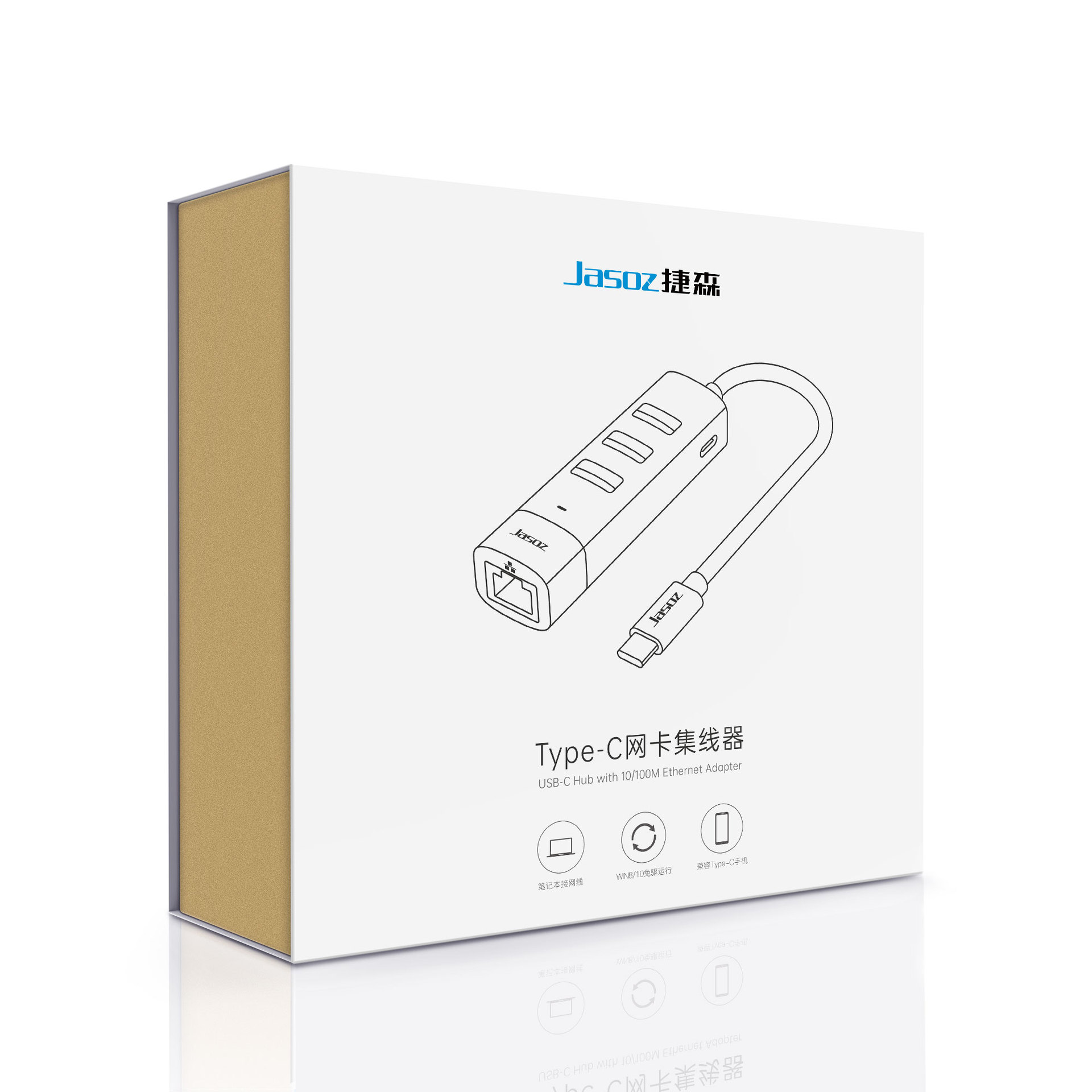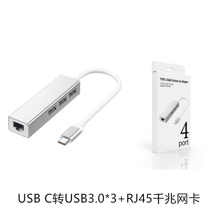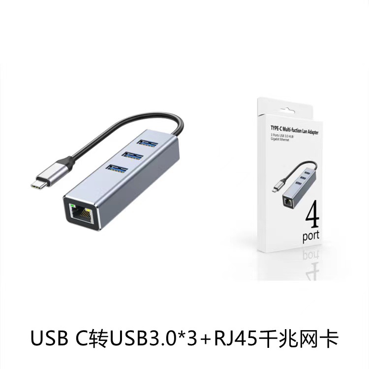- Specification: ZX057Type-C Gigabit Network Card + 3-port 3.0HUB Aluminum Alloy Straight Port
