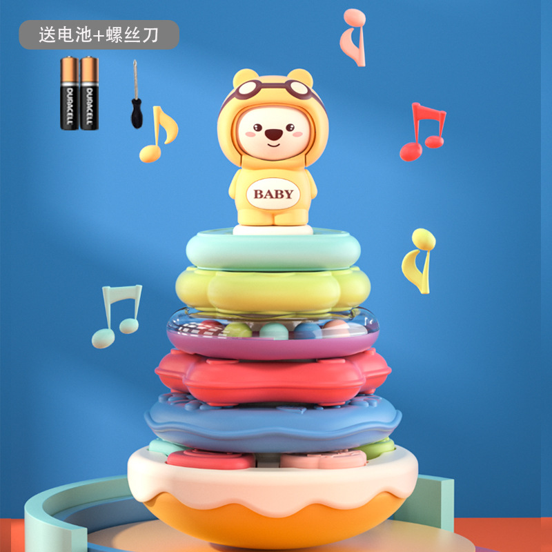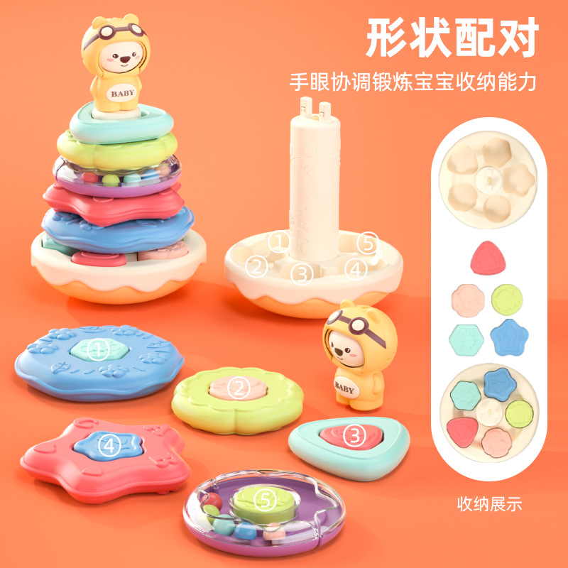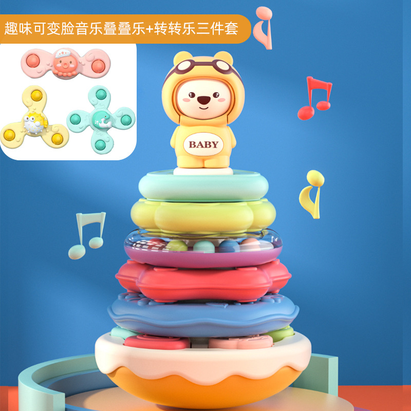 [ Special feature]: Cute bear with changeable face, musical Jenga, tumbler design, building block matching