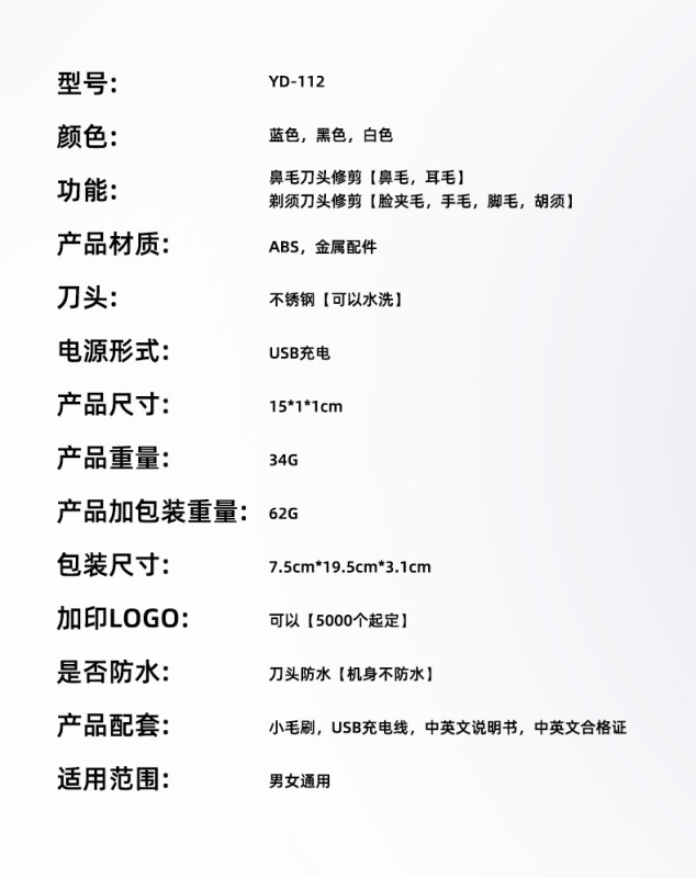 - 產品規格:鼻毛機子+剃鬚刀頭【二合一】