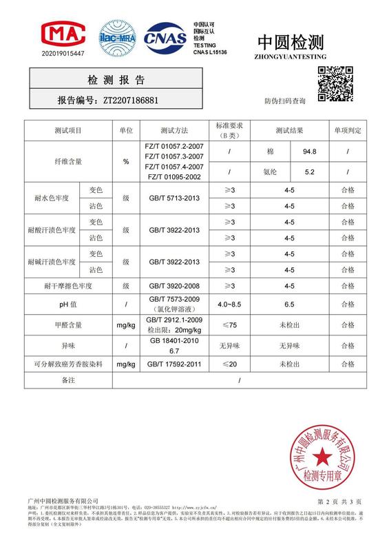 - Main Fabric Component Content: 95% (inclusive) - 100% (exclusive)