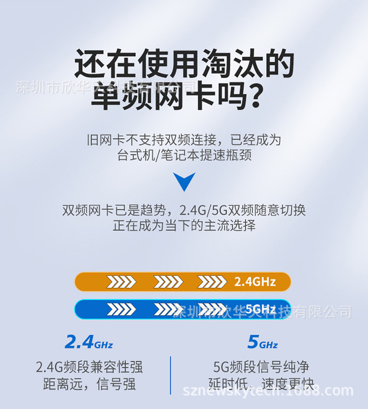 - Working frequency band: 2.4G/5.8G