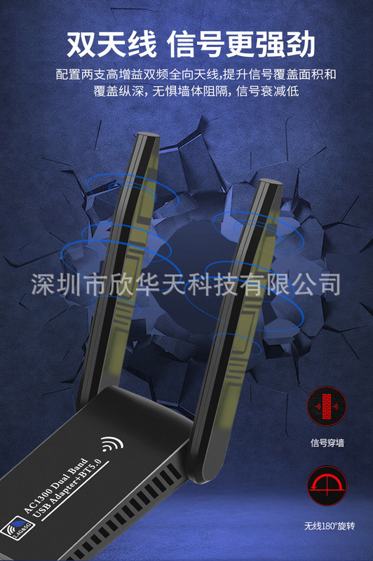 - Transmission rate: 1300Mbps