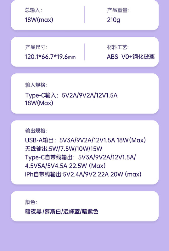 - Charging Power: PD20W