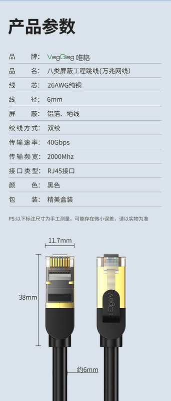 - Model: Category 8 network cable