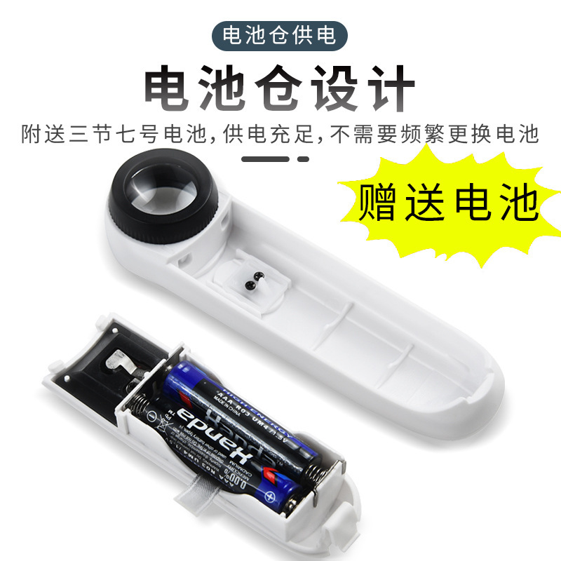 - Specifications: magnifying glass plus three batteries