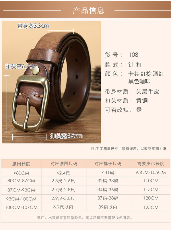 - Belt buckle material: copper