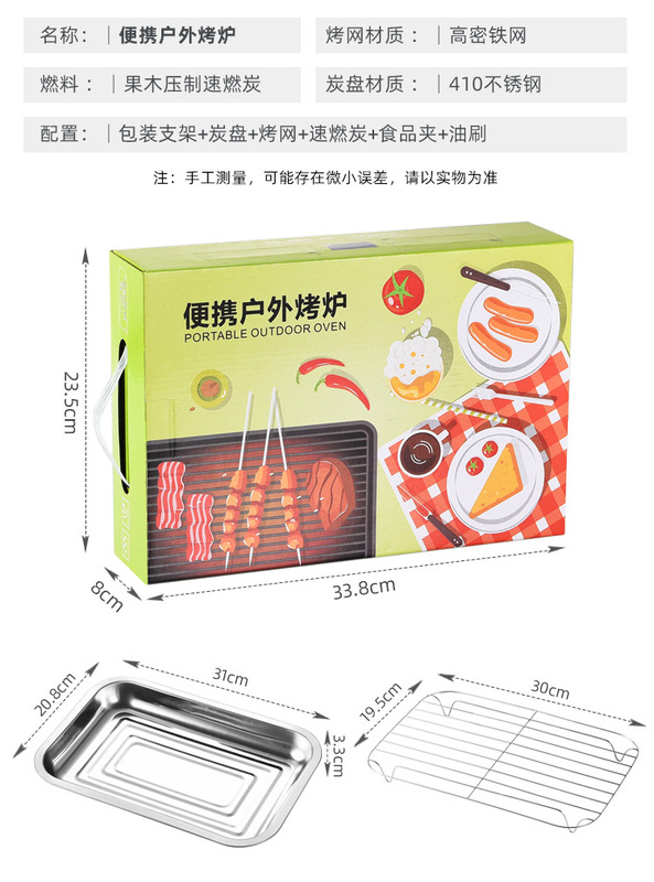 - Grill/Plate Specifications: 30cm oven with 30 charcoal pieces