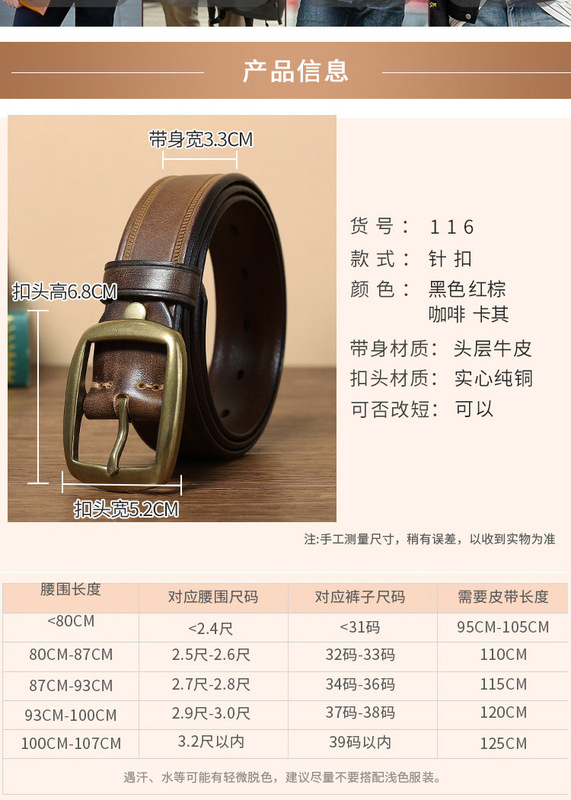 - Belt buckle material: copper
