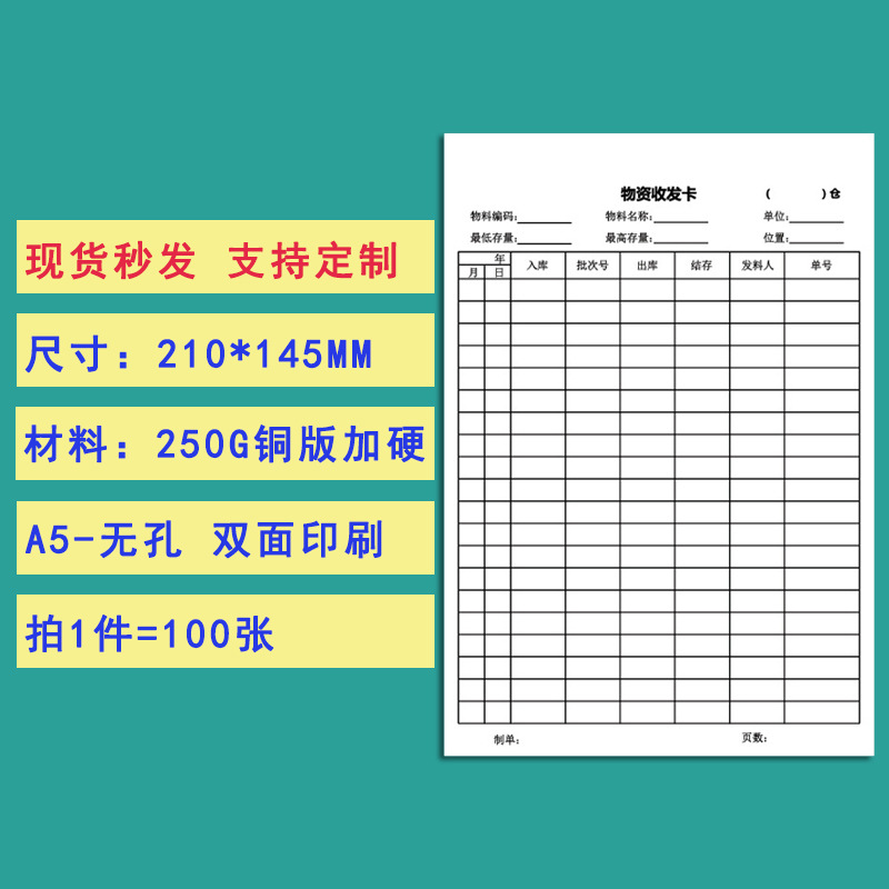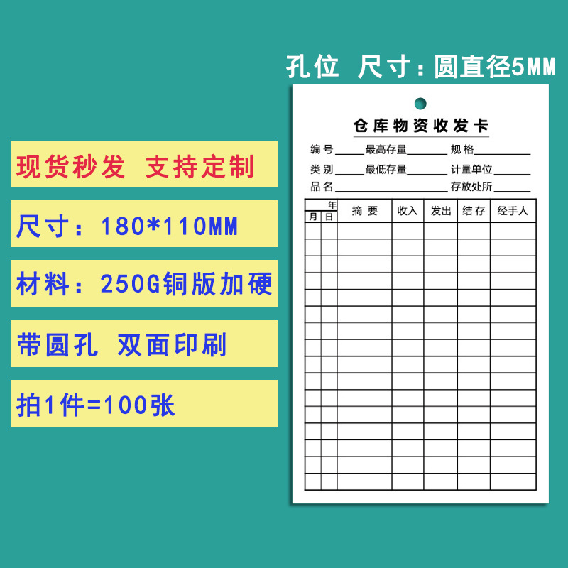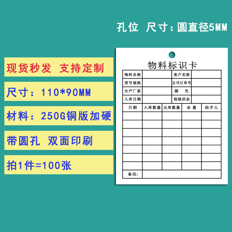 - Specifications: #11 Warehouse Materials Sending and Receiving Card