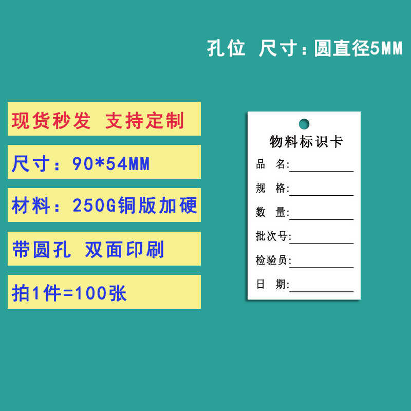 - Specifications: #08 Material Identification Card