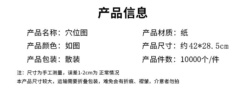 - Specification: Human acupoint map + essential oil + pouch
