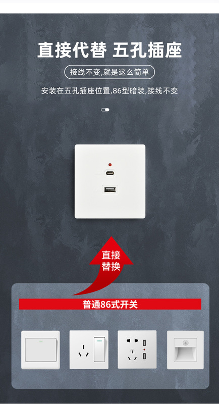 - Model: Concealed Type-C Two-Position 220V to 5V [Fast Charging]