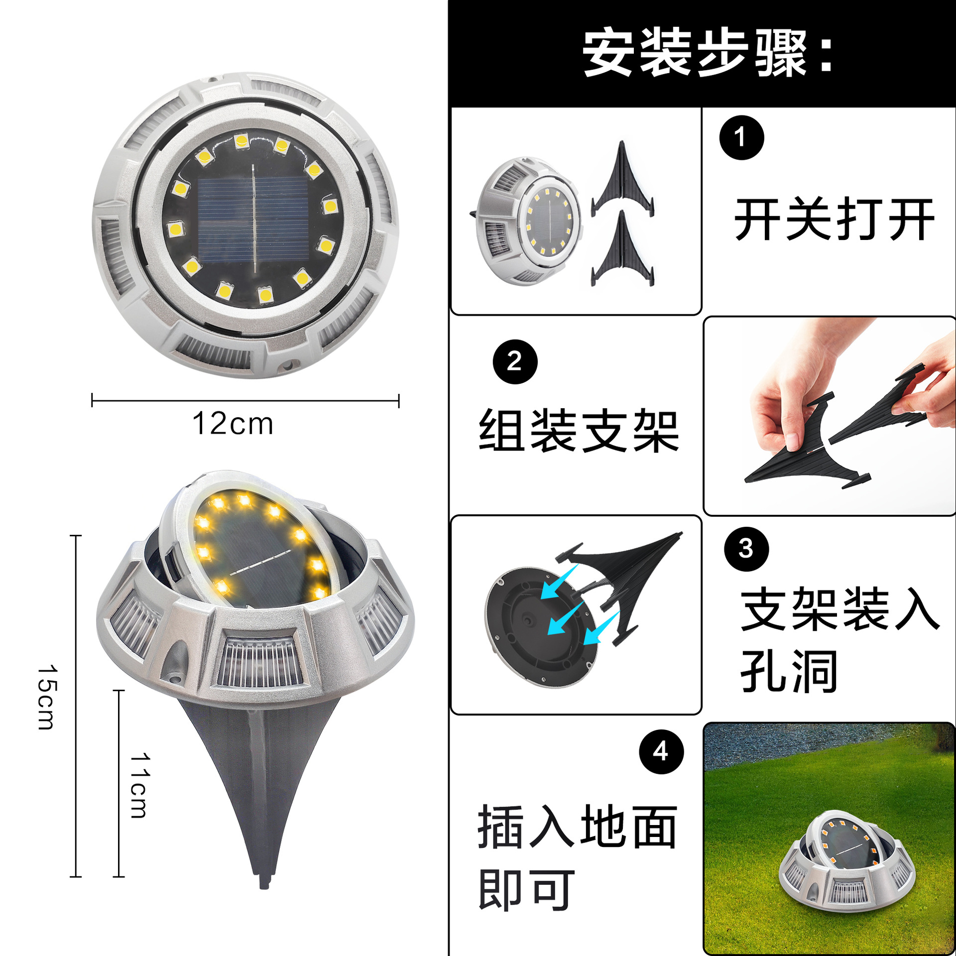 - Specification Category: 12 LED White + Side Color Light (Aluminum Version Rotatable)