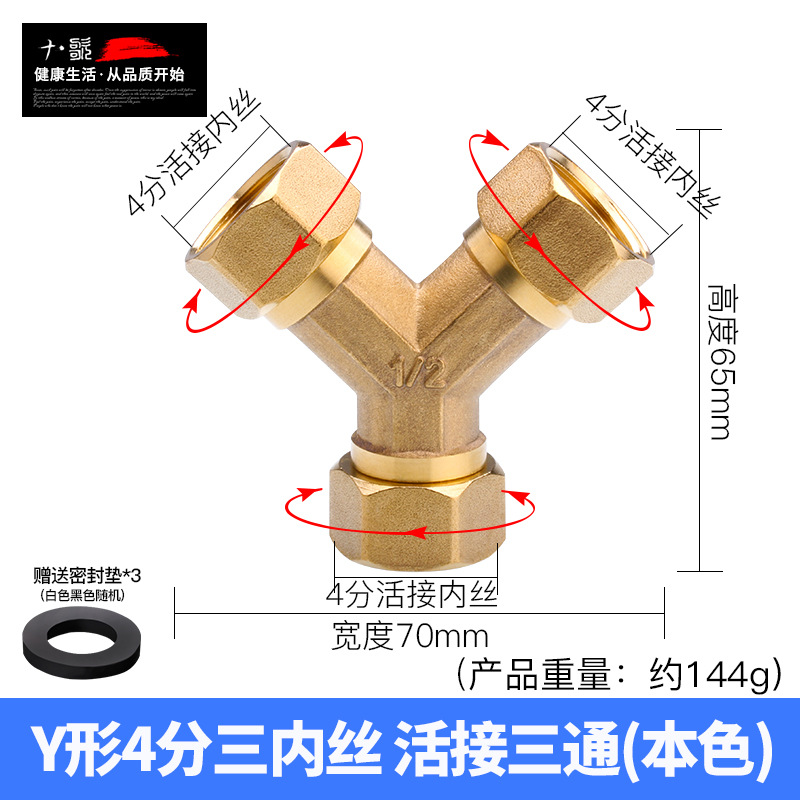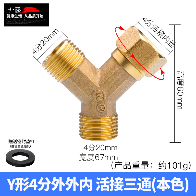 - Product Specification: 4-inch Y-type three internal threads swivel tri-way本色