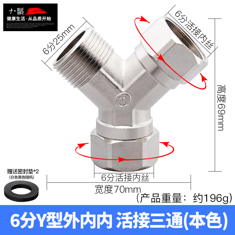 - Product Specification: 6-inch Y-type outer-inner-inner swivel tri-way本色