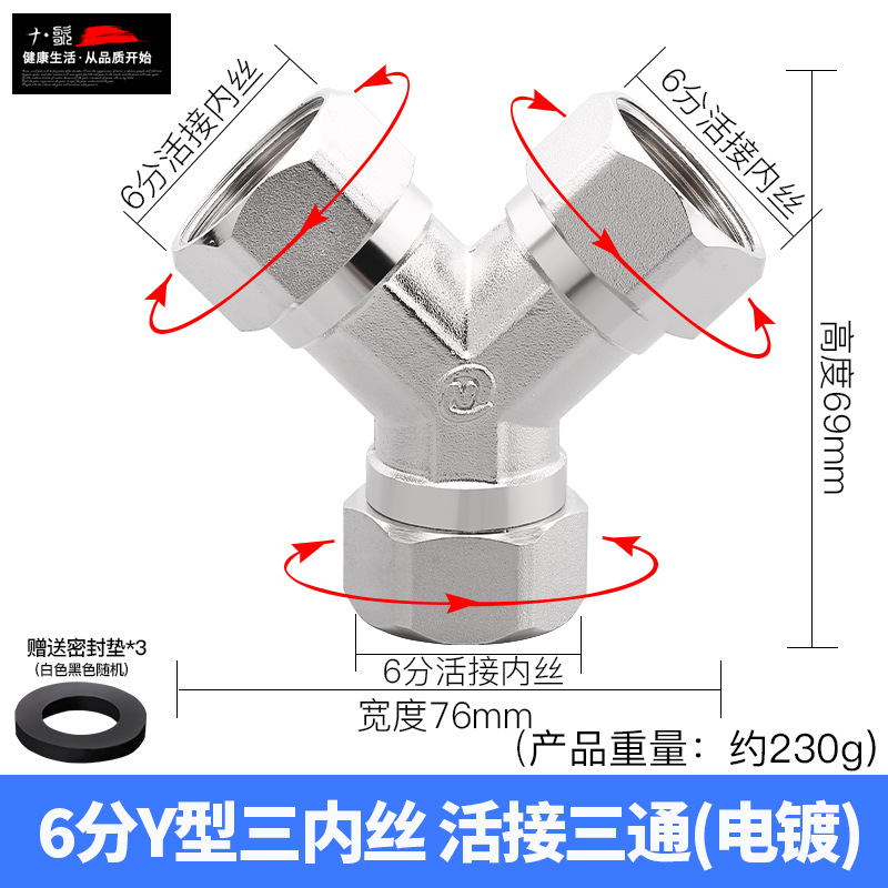 - Product Specification: 6-inch Y-type outer-inner-inner swivel tri-way电镀