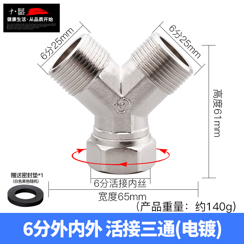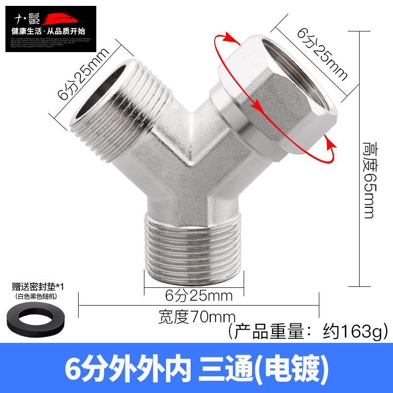 - Product Specification: 6-inch Y-type outer-outer-inner swivel tri-way电镀