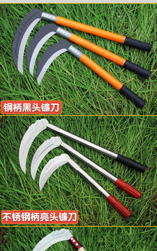 - Specifications: [Manganese steel] Forged sickle (medium size) steel handle