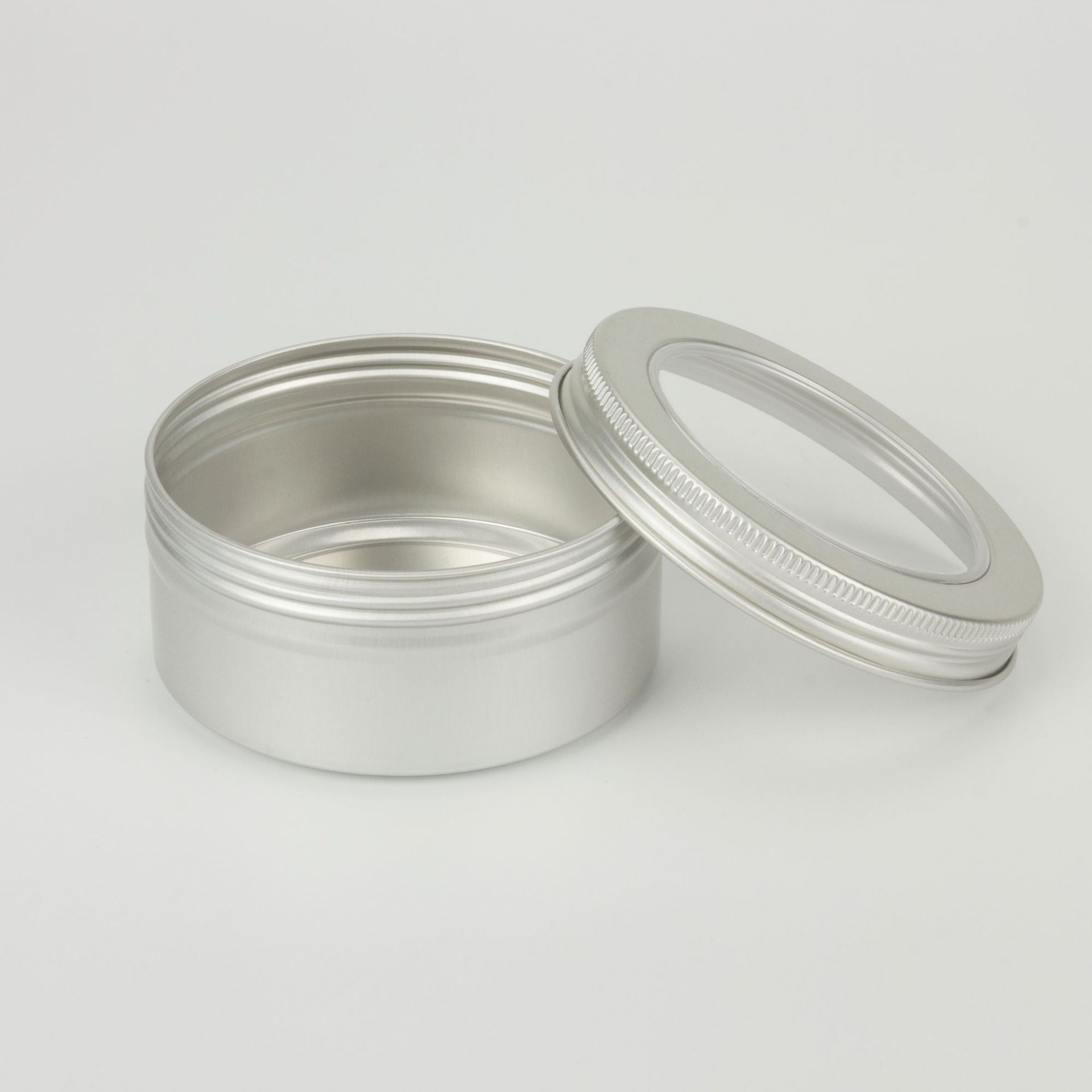 - Specification: 150ml 83*38mm toothed screw cap rolled edge hinged lid natural color aluminum box
