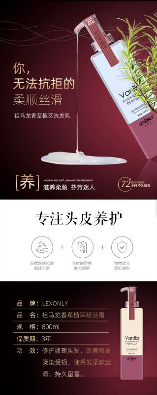 - Function: Anti-dandruff, moisturizing, refreshing, oil-controlling, scalp soothing, strengthening, preventing hair breakage, improving scalp itching, making it soft, thick and fluffy