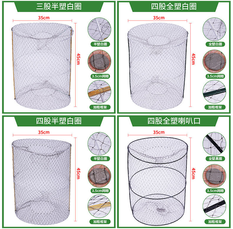 - Specifications: 4 strands of all-plastic white ring bell mouth (35*45)