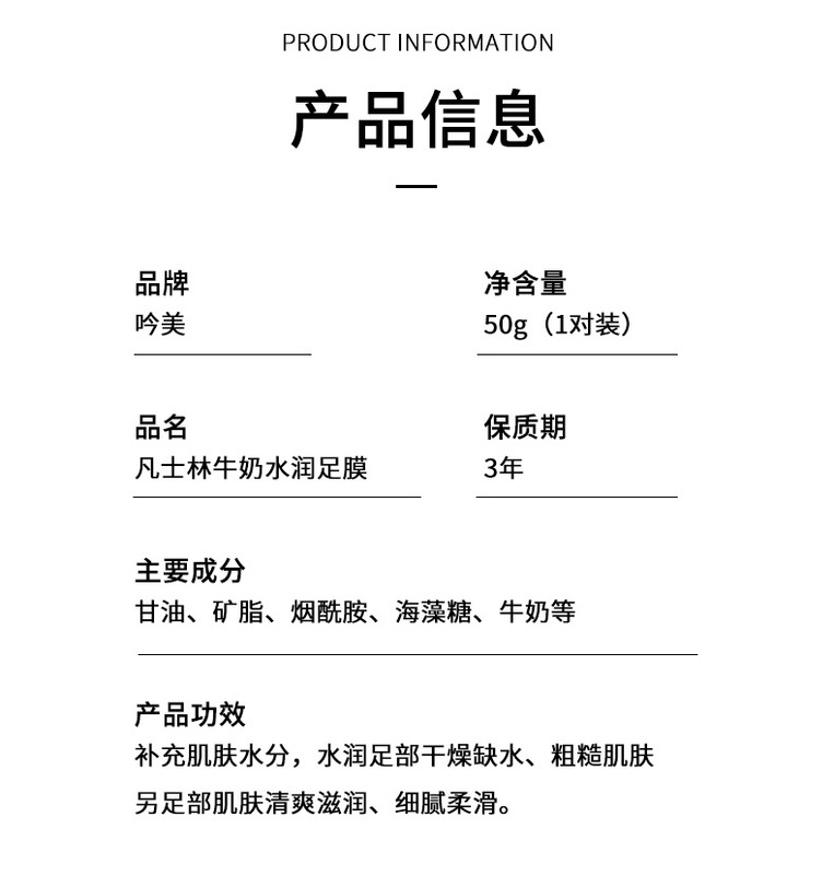 - Product Specification: Yin Mei凡士林牛奶水润足膜50g