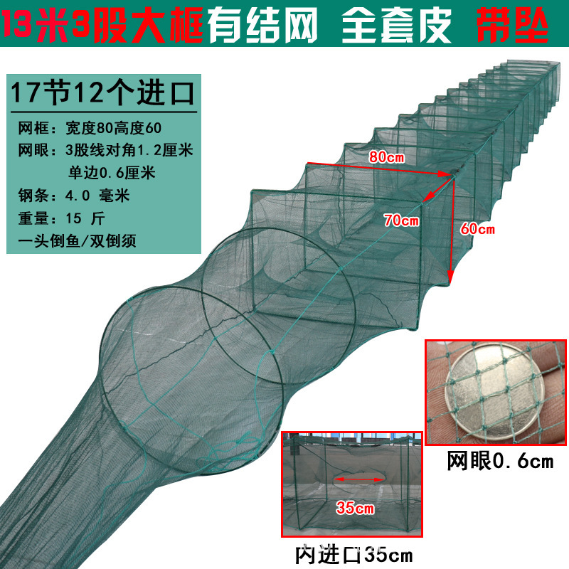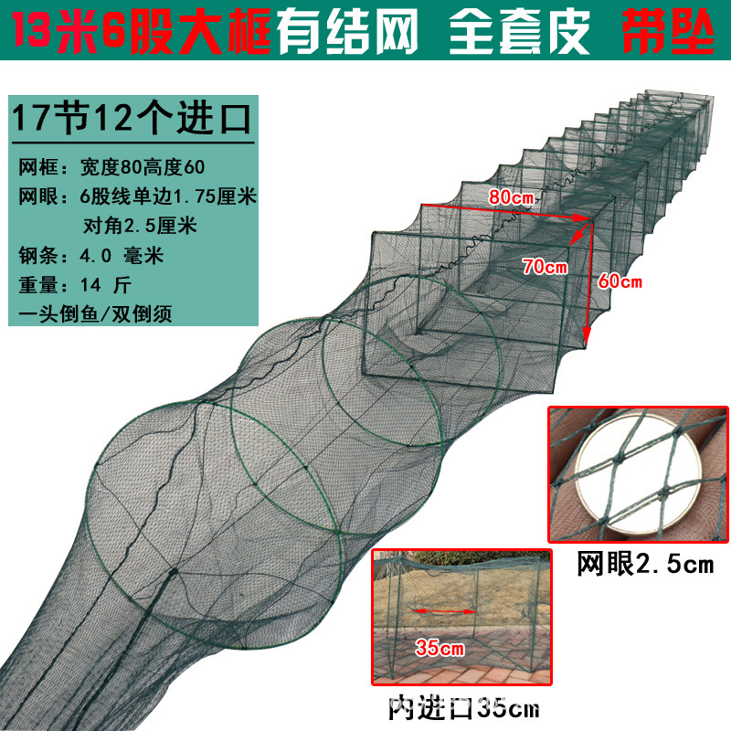 - Specification: 13m 6-strand 17-section 12-ports 2.0 mesh 80*60