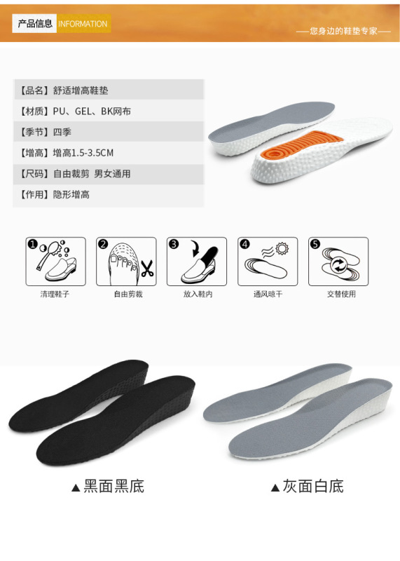 - Insole function: Heightening insole