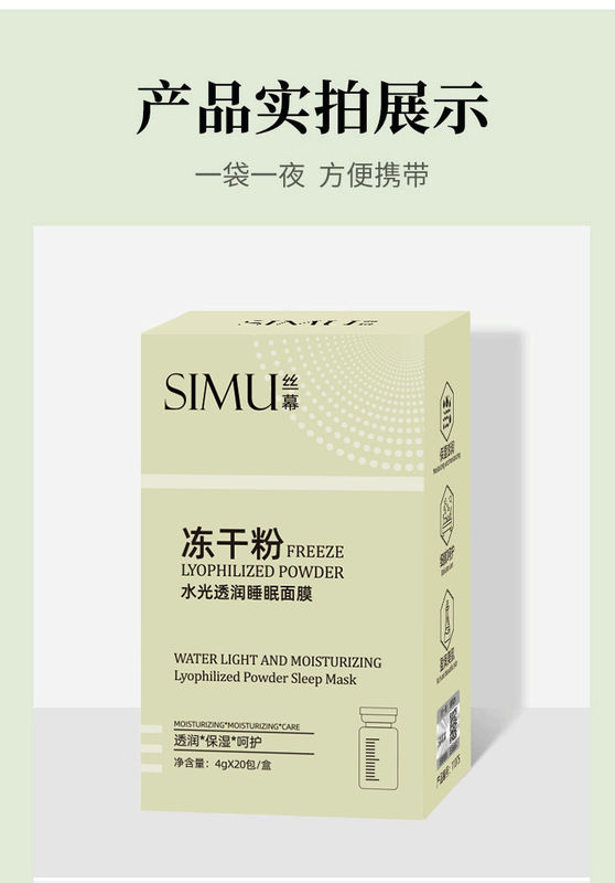 - Product specifications: Silk screen freeze-dried powder water-glow and translucent sleeping mask 4g*20 packs/box