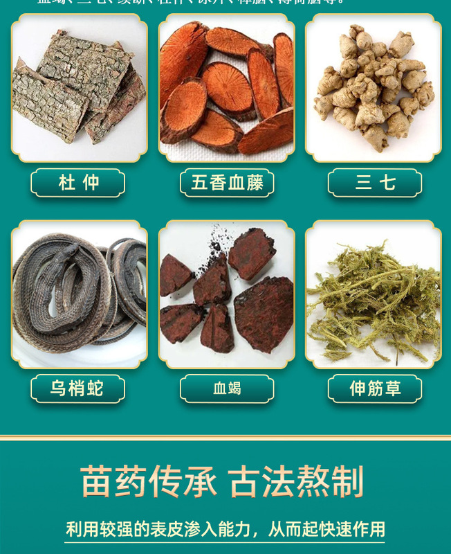 - Main ingredients: Xu Changqing, Shenjincao, Kowloon Vine, Spiced Blood Vinegar, Blood Root, Panax notoginseng, Dipsacus Dipsacus, Eucommia ulmoides, Borneol, camphor, menthol, etc.