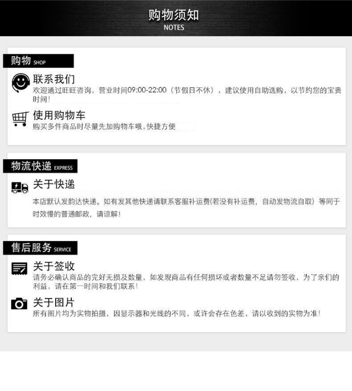 Delivery time: For products in stock, they will be shipped within 3 working days (excluding holidays) after you place your order and make payment. You will receive our notification after shipment.