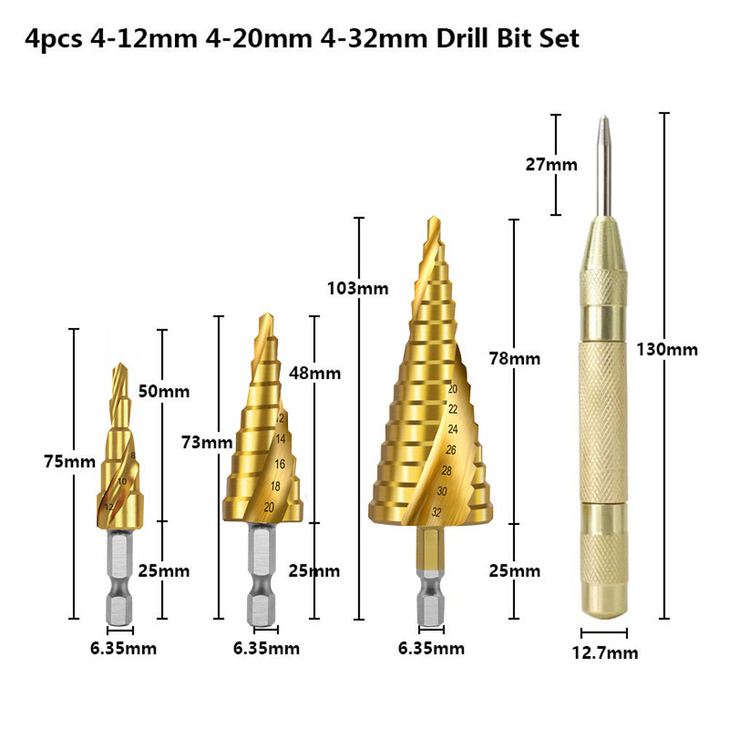 - Model: Spiral Groove Three-Piece Set + Center Punch Cloth Bag Pack [g]