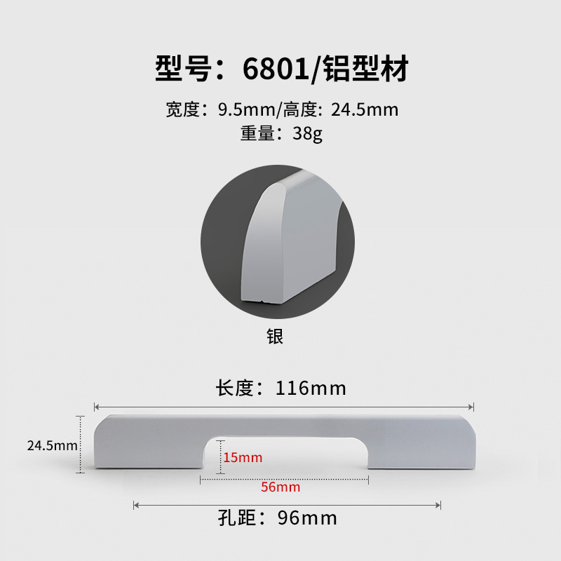- Specifications: Silver 6801-96 hole pitch