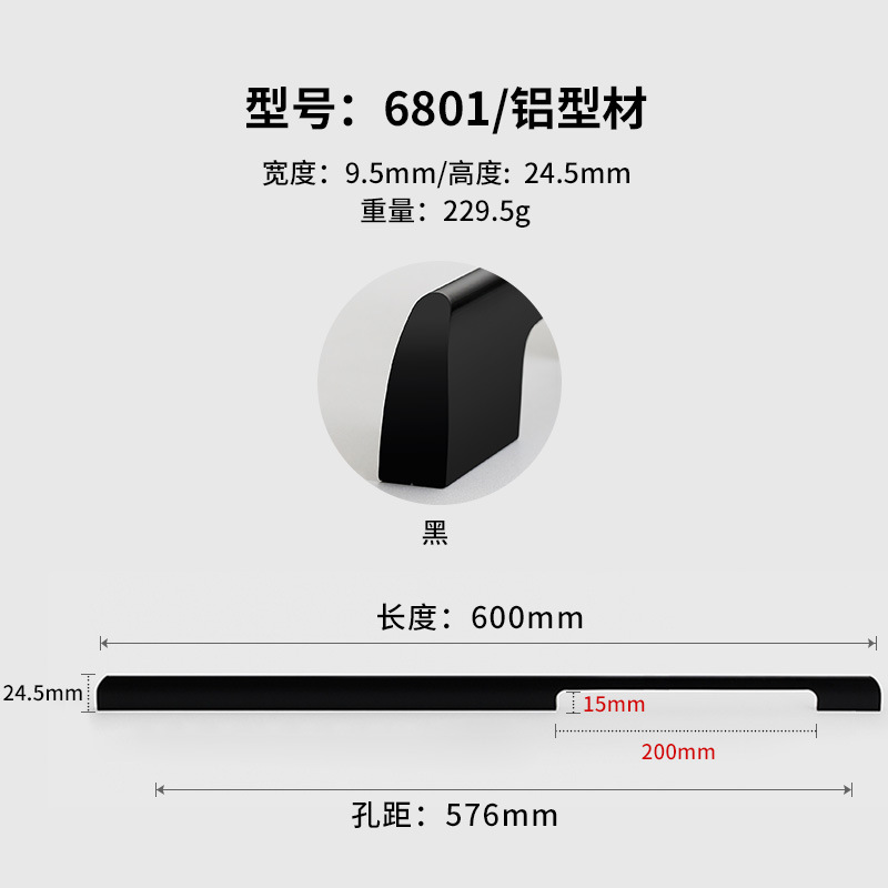 - Specifications: Black 6801-672, hole spacing, total length 700