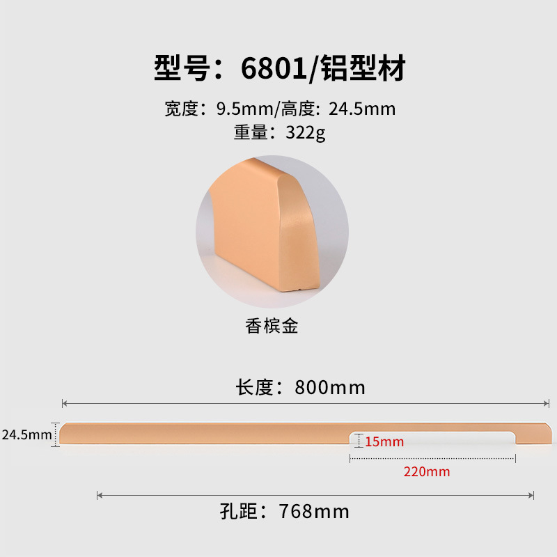 - Specifications: Champagne gold 6801-768 hole spacing total length 800