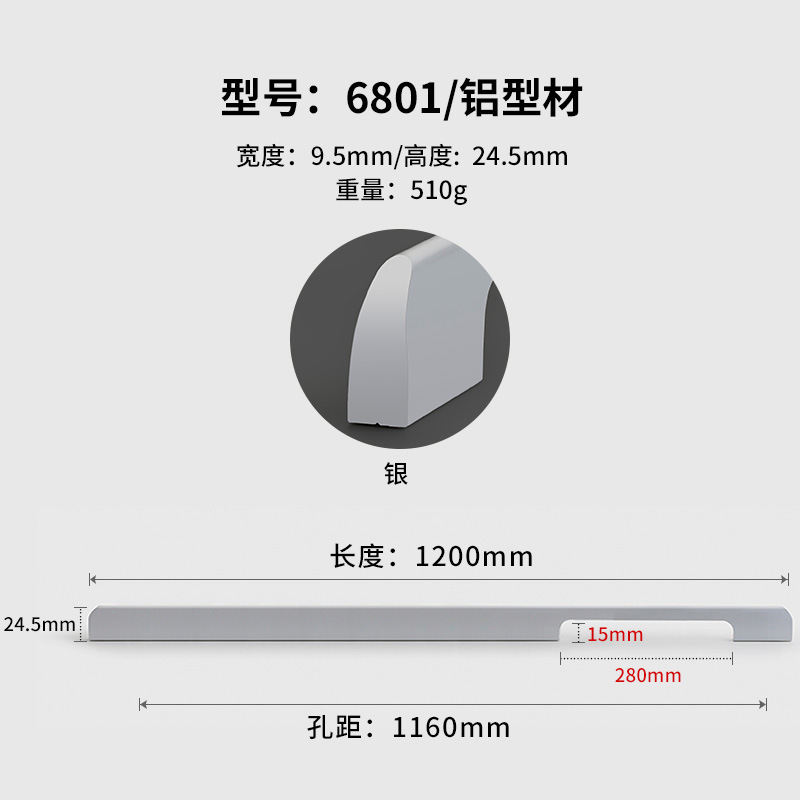 - Specifications: Silver 6801-1160 hole spacing total length 1200