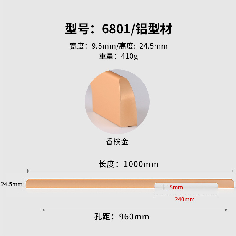 - Specifications: Champagne gold 6801-960 hole spacing total length 1000