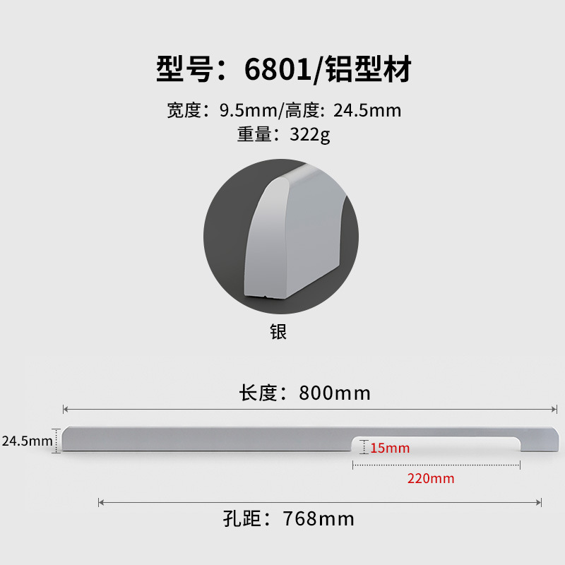 - Specifications: Silver 6801-768 hole pitch total length 800