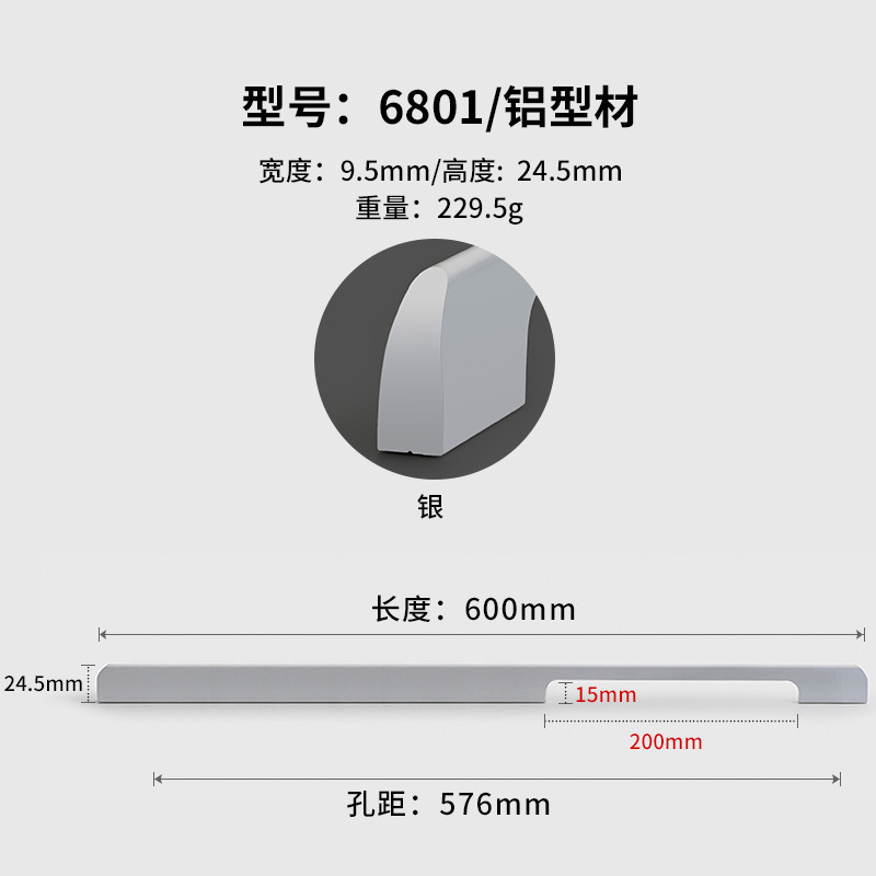 - Specifications: Silver 6801-576 hole pitch total length 600