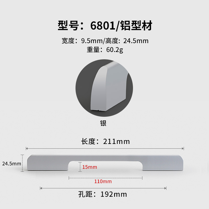 - Specifications: Silver 6801-192 hole pitch
