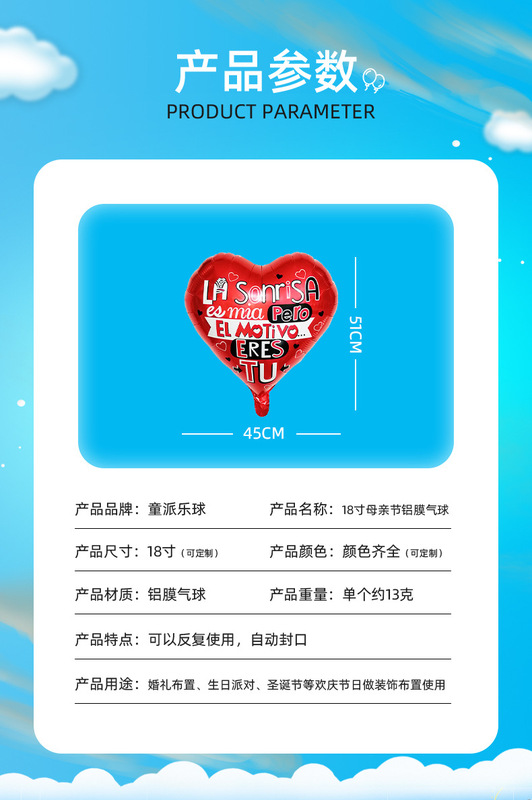 - Balloon type: Aluminum film balloon