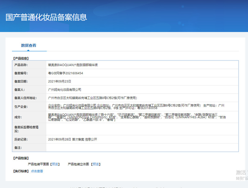 - Product name: BIAOQUAN six-peptide moisturizing eye essence