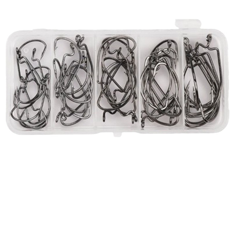 - Specification: 51-piece 1# black nickel wide-belly hook five-grid box set